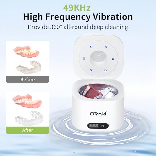 Click for More Images ?High-frequency 49,000Hz Ultrasonic Technology?Say goodbye to stubborn grime! OTraki ultrasonic retainer cleaner uses high-frequency 49kHz sound waves to blast away dirt, oils, from jewelry, retainers, and dental...