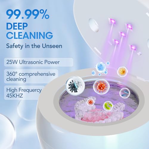 Click for More Images UTILIZE ADVANCED ULTRASONIC RETAINER CLEANER? TECHNOLOGY - Ultrasonic Cleaner 45khz Deep Clean Retainer Cleaner Machine, Removing 99.9% of Bacteria and Stains. Perfectly Designed As Dental Pod Ultrasonic Cleaner for...