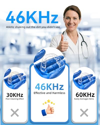 Click for More Images [2 -In-1 Ultrasonic Retainer & Jewelry Cleaner 46kHz]: Achieve exceptional cleanliness with our ultrasonic retainner cleaner Machine using 46kHz high-frequency sound waves. It delivers 360° cleaning by reaching into gaps...