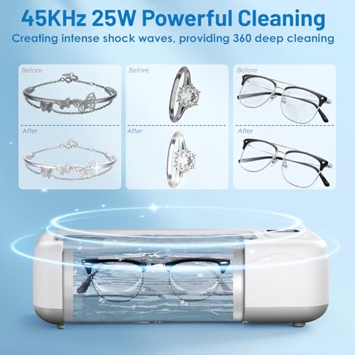 Click for More Images ? Professional-Grade Ultrasonic Cleaning Power Our engineered reliable, high-frequency ultrasonic jewelry cleaner delivers professional results at home. The 45,000Hz ultrasonic waves generate millions of microbubbles to deep...
