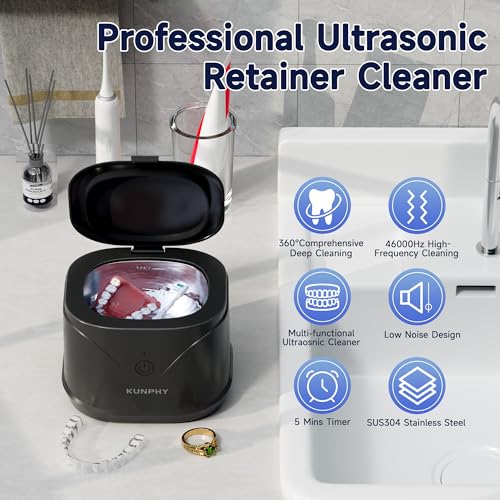 Click for More Images ? Highly Recommended by Our Customers: The KUNPHY Retainer Cleaner has been praised for its powerful cleaning performance and ease of use. With 46kHz ultrasonic vibration, it effectively cleans dentures, retainers, braces,...
