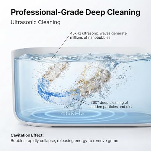 Click for More Images ?45KHZ Ultrasonic Dental Retainer Cleaner? Harnessing 45,000Hz ultrasonic waves generates millions of nano-scale bubbles to penetrate denture crevices, gently removing buildup and stains, and effectively help removing 99.9%...