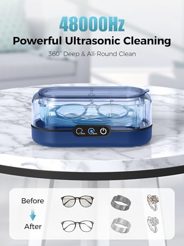 Click for More Images Wide Compatibility: This dark blue ultrasonic jewelry cleaner can be used in deeply cleaning jewelry, glasses, dentures, waterproof watches, and other delicate items without causing damage. (Note: Cannot remove oxidized...