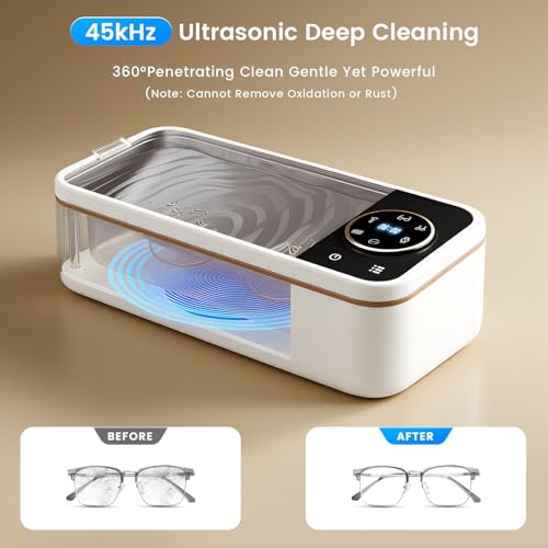 Click for More Images ??Deep Cleaning Power? 40kHz Ultrasonic Frequency + 60W Power & 100W Heater dissolve tough grime in jewelry, eyeglasses, and tiny parts. Gentle yet effective – safe for diamonds, watches, and delicate electronics.???Smart...