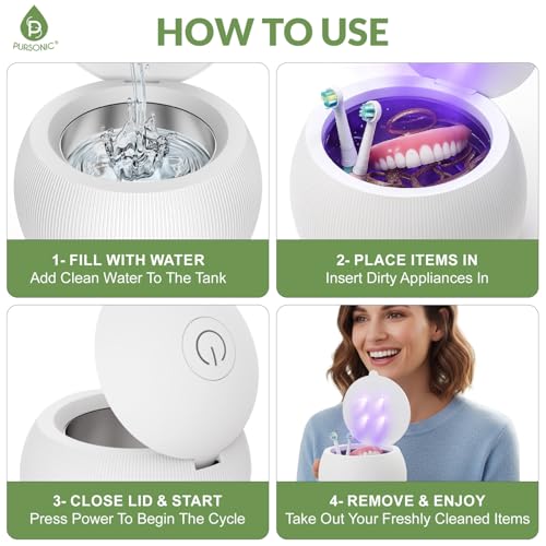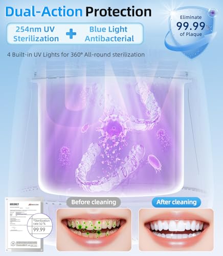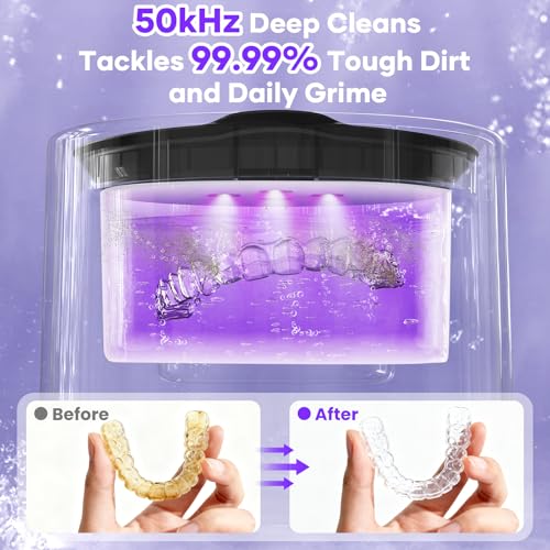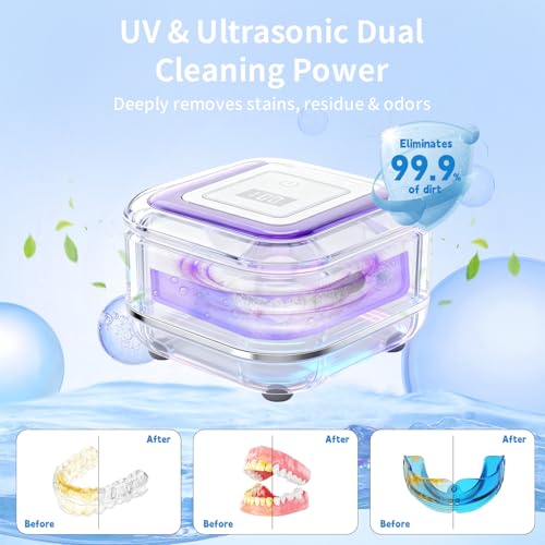 Click for More Images Deep Ultrasonic Cleaning: This ultrasonic retainer cleaner uses 42kHz sound waves to dislodge dirt from tight crevices. Ideal for daily use as a sonic retainer cleaner for dentures, aligners, and mouthguards.UV-C LED...