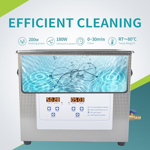 Click for More Images Digital Control Panel?The Cleaning machine features a digital display for precise time and temperature control. With a heating capacity up to 80°C(176°F), adjustable timer from 1-30 minutes.60W ultrasonic power and 40KHz...