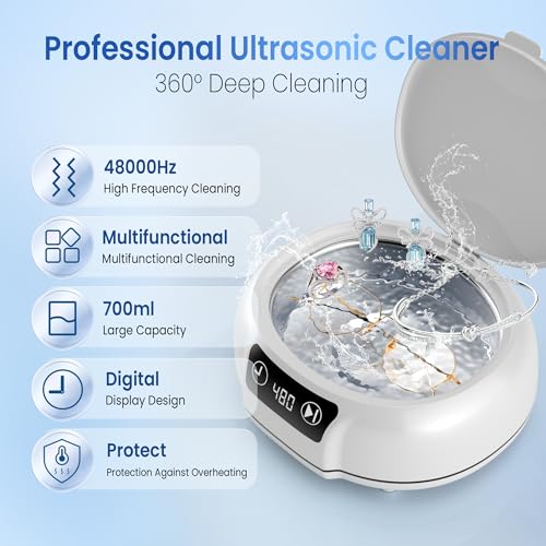 Click for More Images ?Deep Cleaning & Optimal Frequency? This ultrasonic jewelry cleaner uses 45Hz high-frequency sound waves for 360° deep cleaning without damaging items. Perfect for jewelry, retainer, dental denture, silver items, glasses,...