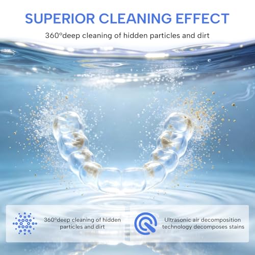 Click for More Images Deep Clean with 44±1kHz Ultrasonic Waves- Retainer cleaner machine with millions of invisible bubbles power-wash away food scraps, reaching places brushing can't, and it didn't causing scratches or damageOne-Button...