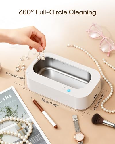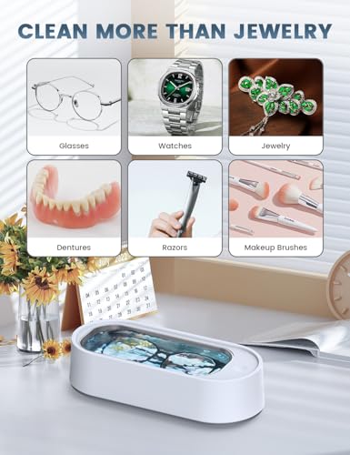 Click for More Images Professional ultrasonic jewelry cleaner: The ultrasonic cleaner can provide deep cleaning, just add tap water and press the switch button to clean the dirty jewelry in a few minutes without removing stains (adding ultrasonic...