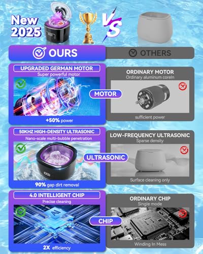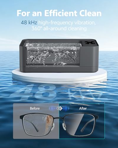 Click for More Images ?PRO-GRADE 48KHZ ULTRASONIC POWER? Our cleaner harnesses intense 48,000Hz ultrasonic waves, the optimal frequency for daily use. These powerful waves generate millions of micro-bubbles that penetrate the tiniest crevices of...
