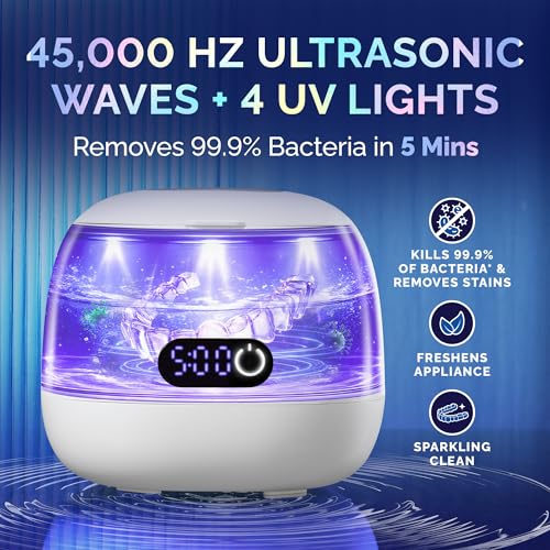 Click for More Images ? ?45kHz Ultrasonic Deep Cleaning? – Harnesses high-frequency 45kHz ultrasonic waves to thoroughly clean all your Dentures, Anti Grinding Mouth Guard, Braces, Toothbrush Heads, Toothbrush, reaching every corner and crevice...