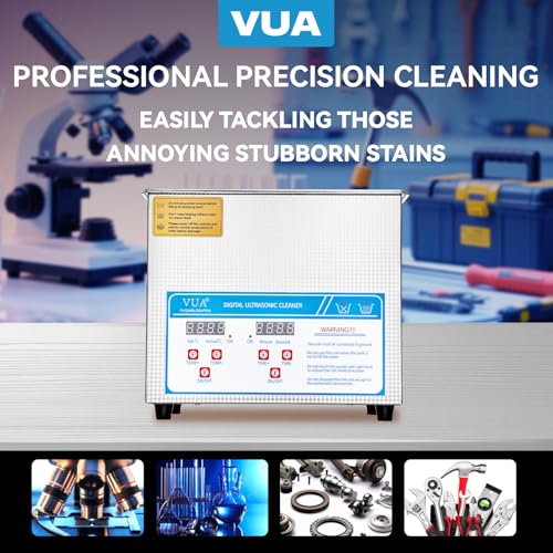 VUA 3L Ultrasonic Cleaner with Digital Timer & Heater, Professional Ultra Sonic Cleaner, Ultrasonic Parts Cleaner for Glasses Watch Denture Dental Irrigator Ring Jewelry Tools Circuit Board