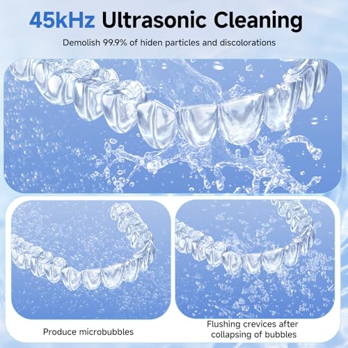 Click for More Images ?Professional Ultrasonic Cleaner for Dental Appliances???- Safely cleans retainers, aligners, night guards, and dentures using 48KHz ultrasonic waves, reaching even hard-to-clean areas for a thorough refresh?Multi-Purpose...