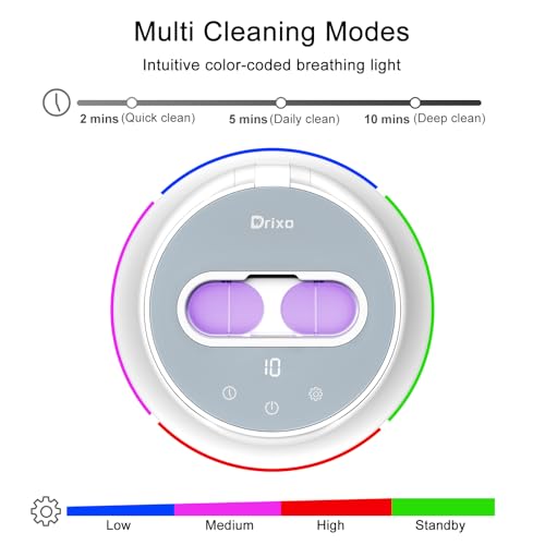 Click for More Images 9+1 Modes with Color-Coded Light: Touch control with 9 cleaning combinations (3 intensity levels/3 timer settings/standalone UV light). Our ultrasonic retainer cleaner features intuitive color lights (Blue/Purple/Red/Green)...