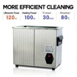 Click for More Images Digitial timer: 180, 280, 380, 480 and 90 seconds.Large tank size: 9.6"x5.9"x3". Tank capacity 2.6 Qt / 2.5 L.Power: 110V 160W including the heater. (220V available with extra charge) Ultrasonic frequency: 35,000 Hz.Come...