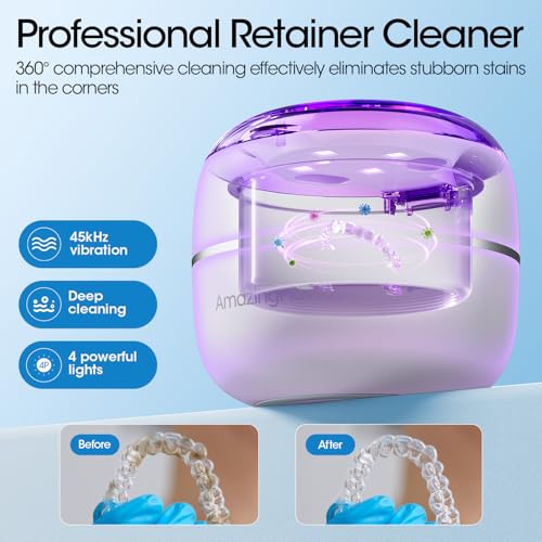 Click for More Images OPTIMIZED ULTRASONIC FREQUENCY: This ultrasonic retainer cleaner delivers powerful yet gentle cleaning to remove stubborn residue from hard-to-reach areas of dental appliances without surface damageFRESH DENTAL CARE:...