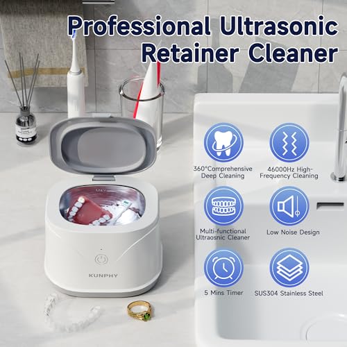Click for More Images ? Highly Recommended by Our Customers: The KUNPHY Retainer Cleaner has been praised for its powerful cleaning performance and ease of use. With 46kHz ultrasonic vibration, it effectively cleans dentures, retainers, braces,...