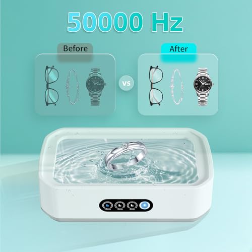 ?Upgraded 2025 Ultrasonic Jewelry Cleaner?: It employs 50kHz high-frequency waves to deeply clean jewelry in minutes, precisely targeting hidden dirt and grease in grooves with 360° coverage. The jewelry cleaner rejuvenates rings, earrings, watches, razors, and silver items, keeping them sparkling clean without damaging delicate surfaces.