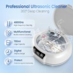 [48kHz Ultrasonic Cleaning] The retainer cleaner machine operates at 48kHz, delivering 360° cleaning action that helps loosen and remove built-up residue from retainers, dentures, mouth guards, night guards, aligners, jewelry, and more—helping restore a clean appearance without harsh scrubbing