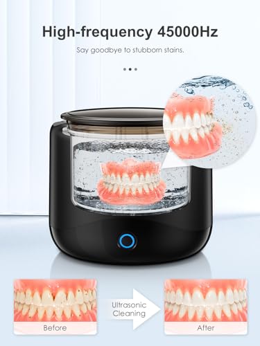Professional Ultrasonic Retainer Cleaner: Utilizing high-frequency 45kHz sound waves, this retainer cleaner offers powerful yet gentle deep cleaning. Ultrasonic waves can effectively penetrate every gap of retainers, mouth guards and dental appliances, removing stubborn residues without causing scratches or damage