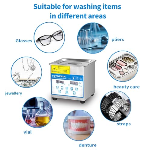 YOTOPWIN Professional Stainless Steel Heated Ultrasonic Cleaner Machine for Jewelry Glasses Watch Straps Dentures Carburetor Circuit Board Mouth Guard Precision Small Parts Cleaning Equipment (1.3L)